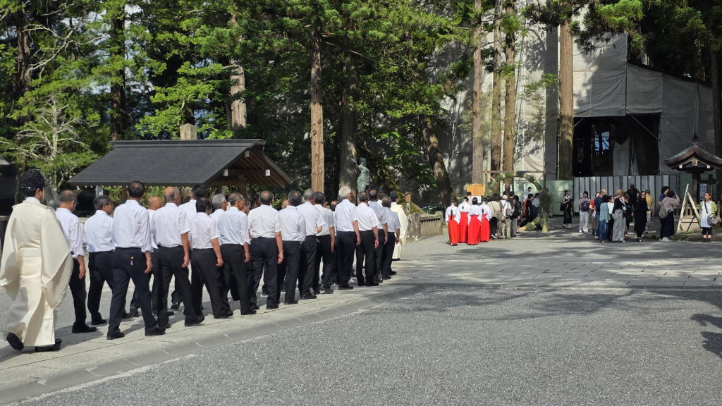 大祓式が終わると、神職や(おそらく)氏子代表の方々を先頭に、大祓式参列者の長い行列が形成された。