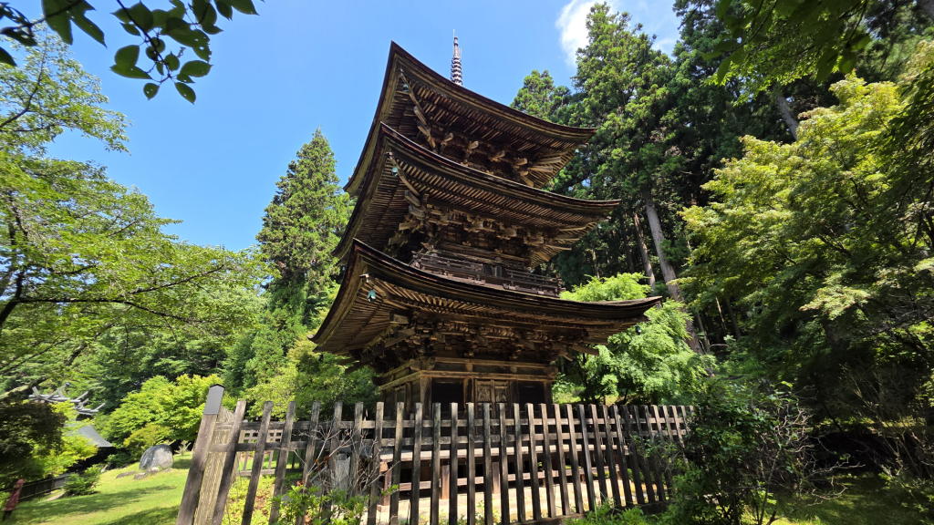 続いて、国指定重要文化財である「三重塔」を仰ぎ見た。