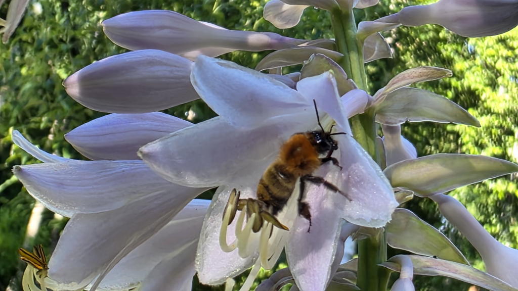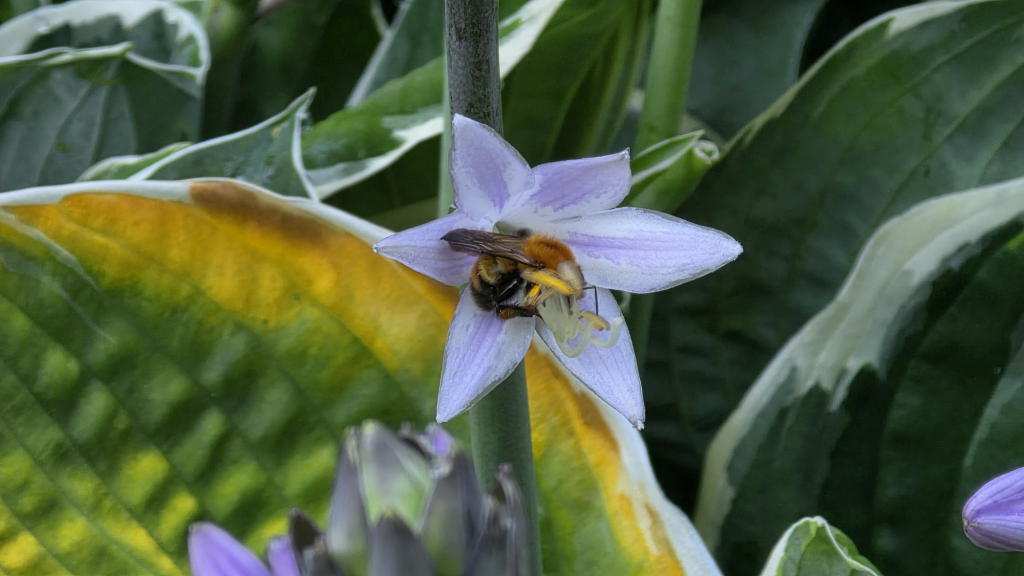 ブッドレアと蝶々が「最高のパートナー」だとすれば、ホスタさん達のバディは「蜜蜂」だね。