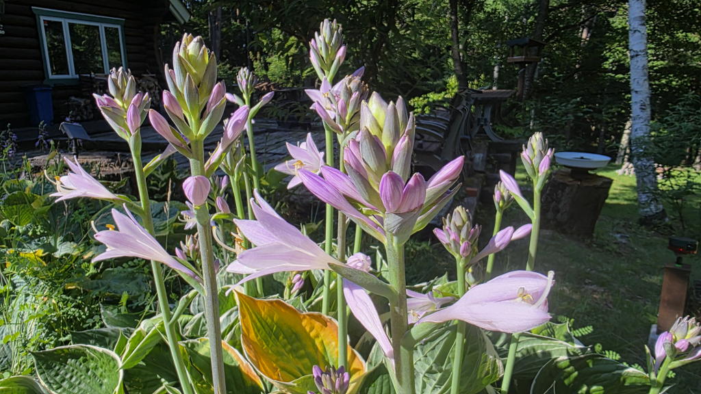 対照的に、私が鹿軍団から守り続けている「ホスタさん達」は、息の長い満開状態が続いている。