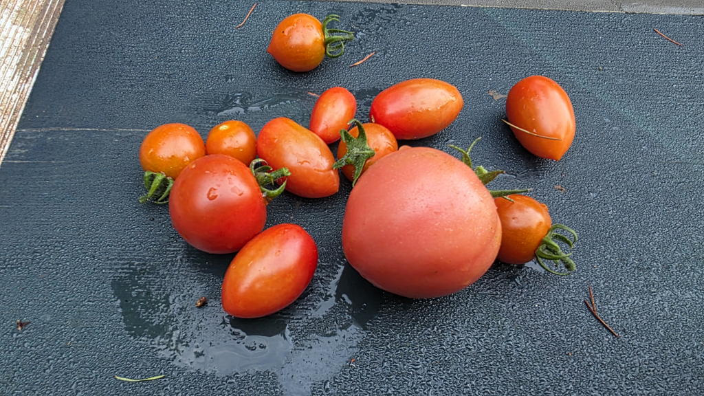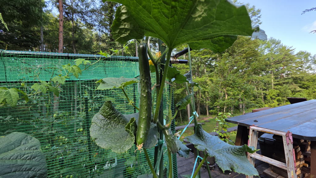 その後は、毎朝、ミニトマトやキュウリなど、今年から社主さまが育て始めたプランター野菜を収穫して、味わっていたのである。