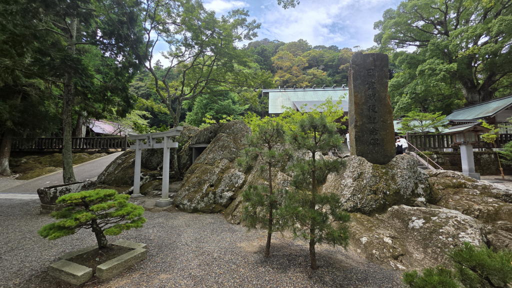 やがて、ご神木の樹種が、照葉常緑樹の「槙」であったり、境内の巨岩が、どう見てもかつては「海岸線の岩」であっただろうと思える形状なのに気が付いた。
