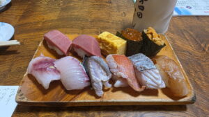 その日のオススメをオーダーしたのだが、近くの漁港で採れたばかりの「地魚の寿司」が兎に角、絶品!