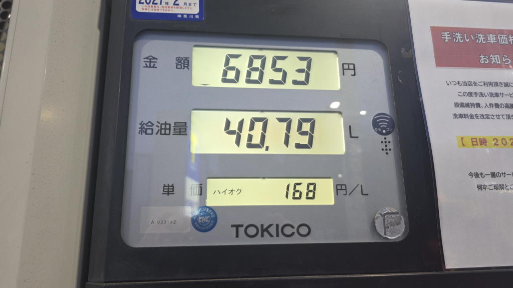ところが、8日に新百合ヶ丘に戻って、自宅から1分程の場所にあるENEOSのGSでおとちゃんに給油した際の価格は、ハイオクがリッターで168円。
