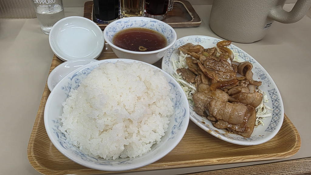 私は「生姜焼き定食」、三男は「キクラゲと卵炒め定食」、追加で「餃子」を一皿頼んでシェアすることにした。