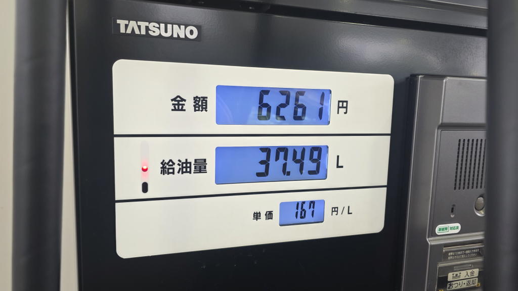GSでの洗車前に給油。ハイオクでリッター167円か…