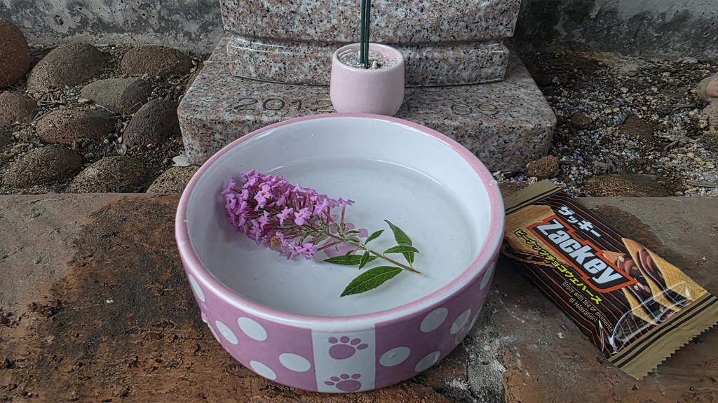 昨日は、雨が降る中、朝からカリンのお墓を掃除して、焼香。