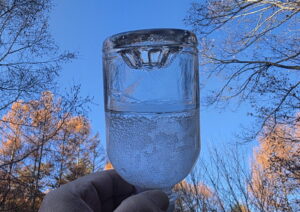 オフィスエントランスに置いたペットボトルの水は完全に凍りついて、逆さにしても、水がこぼれる事はなかった。