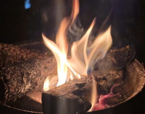 焚き火の炎を眺めていると、世の中の喧噪を忘れさせてくれる。