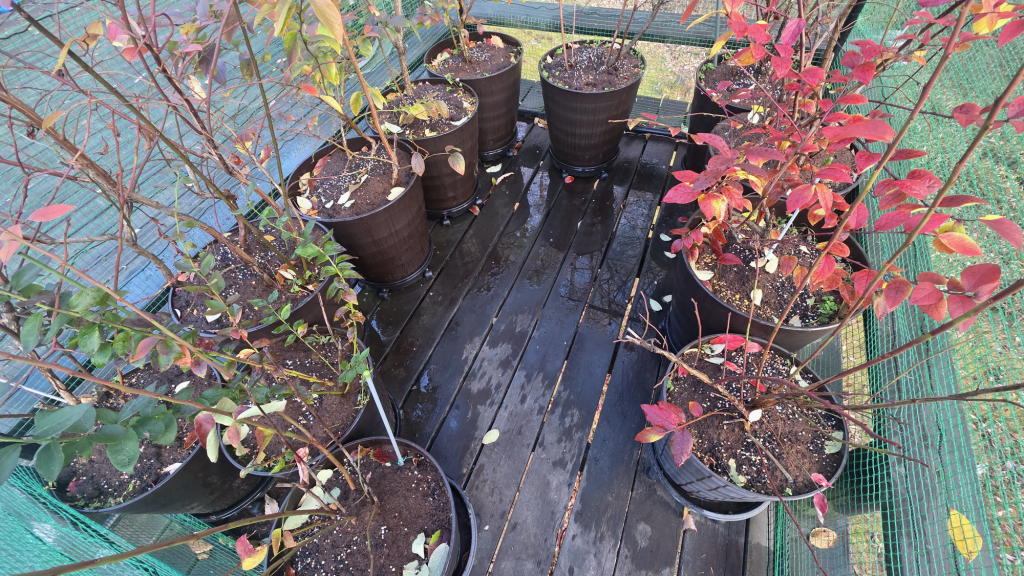 ブルーベリーさん達は、ピートモスと化成肥料の施肥を終えて、いつでも冬眠OK。