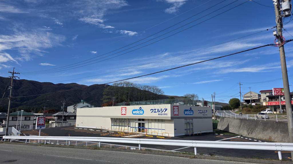 富士見町の便利なところは、富士見高原病院や役場、消防所、八十二銀行の周辺に西友、マツキヨ、コンビニがある事。11月にはウエルシアもオープンした。