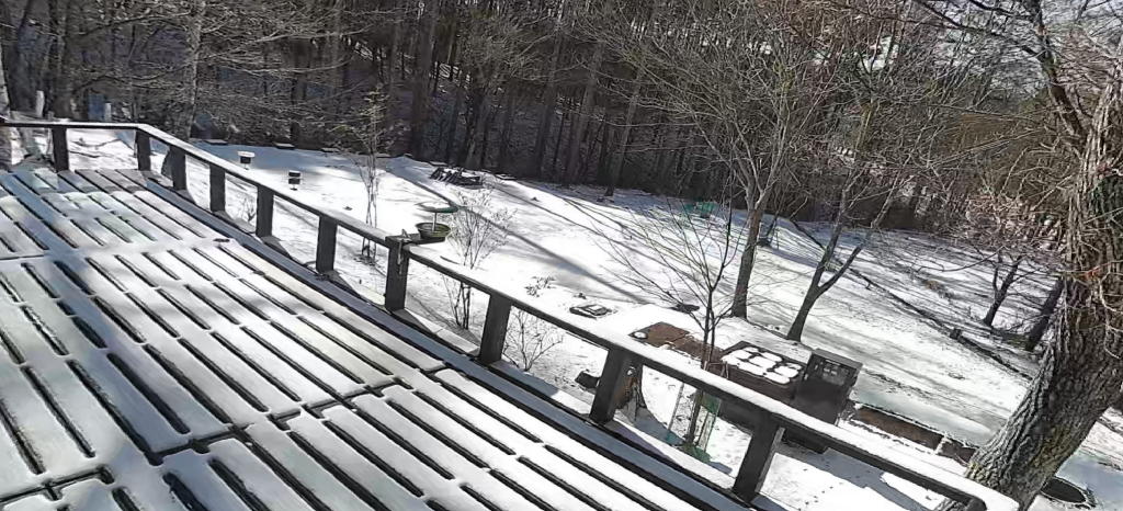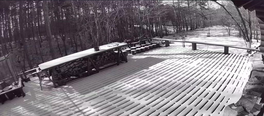 オフィスウッドデッキに設置した温湿度モニターのデータをチェックすると、今朝の4時過ぎに最低気温マイナス9.0°を記録していた。