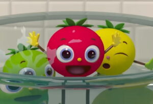 トマトちゃんが画面に大きく映し出されると、ニッコリ笑う。