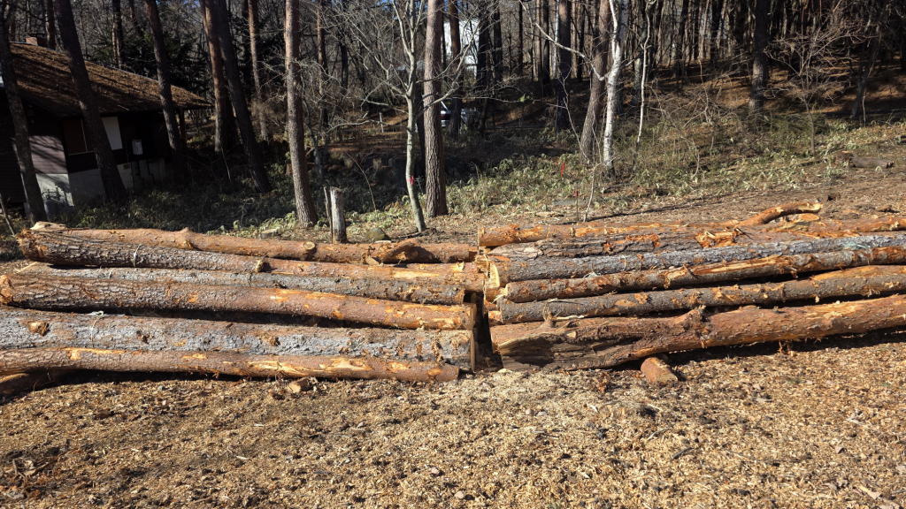 我が家から徒歩で7~8分の場所にある長男の八ヶ岳の家建築予定地は伐採作業がほぼ完了。