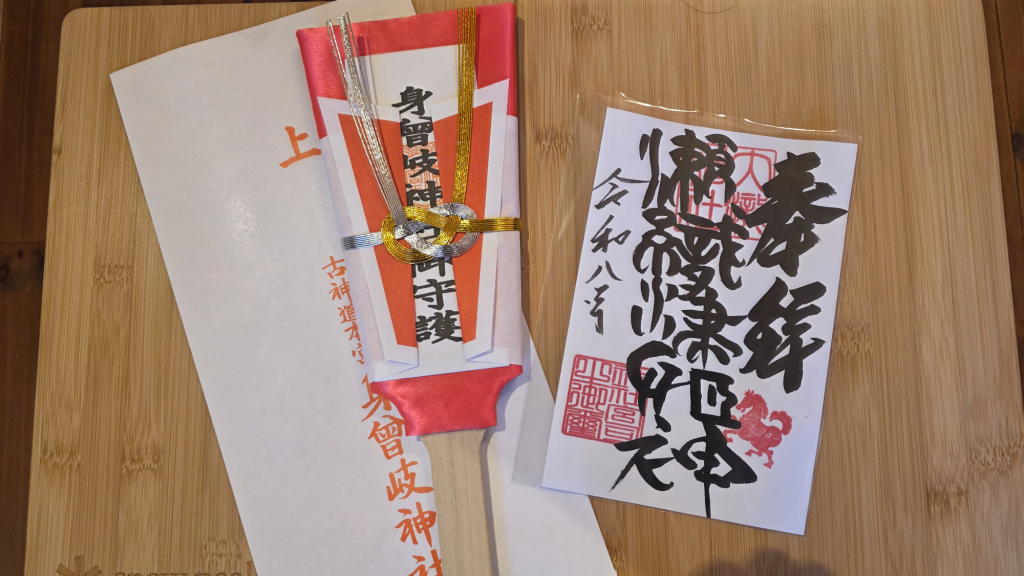 身曾岐神社の羽子板のお札と大瀧神社の瀬織津姫様のご朱印は、私のパワーアイテムなのだ!
