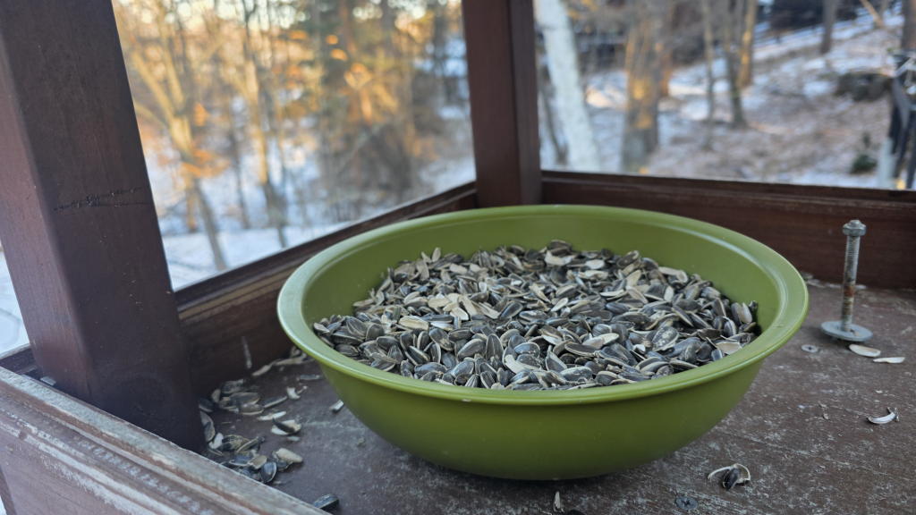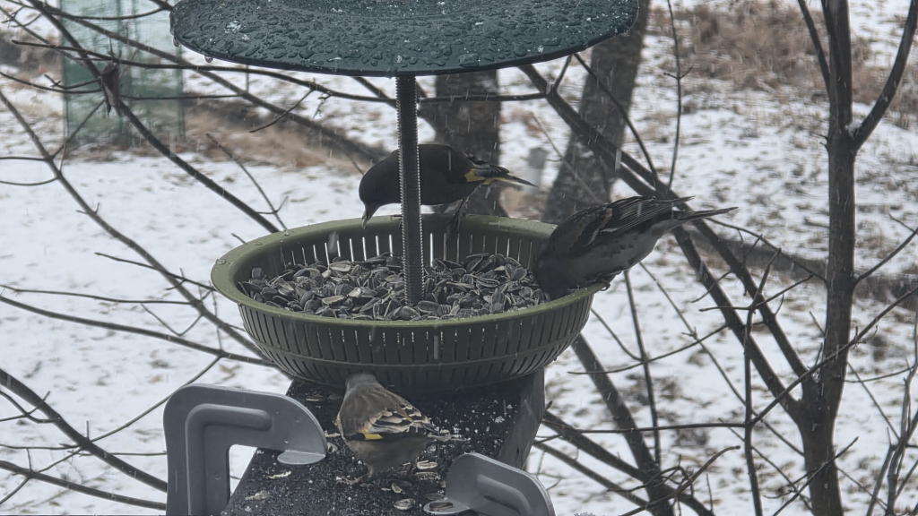 前回の給餌が一昨日の朝だったので、3店共に、給餌皿はもう空であろうと思って、今朝はヒマワリの種を補充しようと考えた。