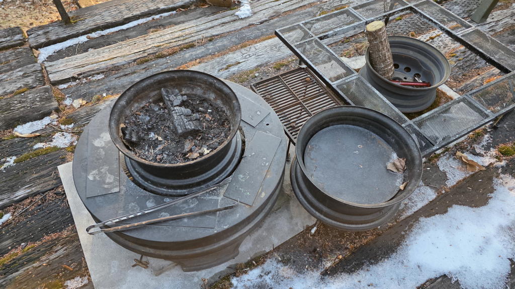例年であれば、午後5時頃からは、枕木デッキに設置した鉄ちん(スチールホイール)のお手製 焚き火台の脇に座って、熱々の珈琲を飲みながら、焚き火を育て始めている頃なんだよね。
