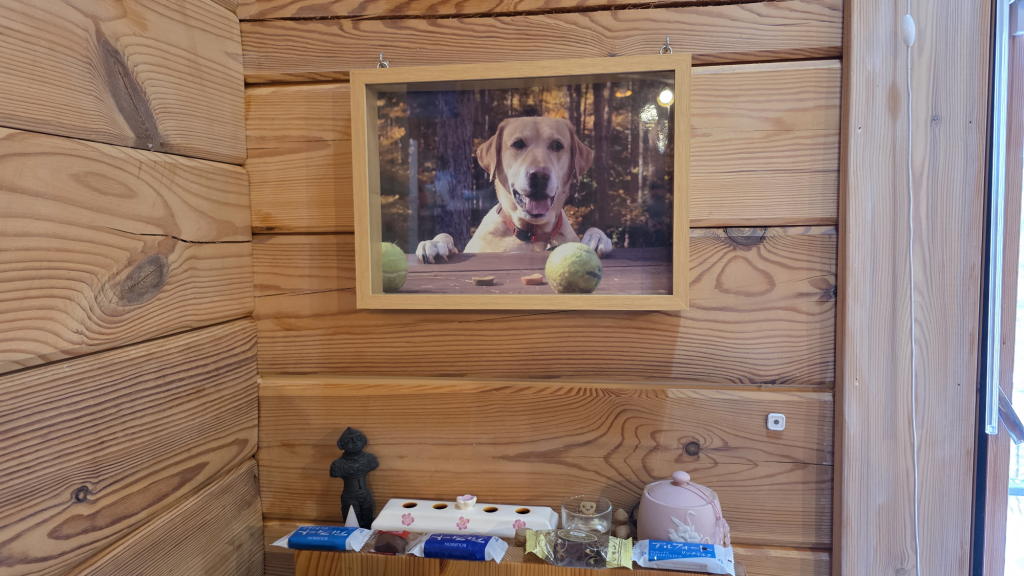 カリンの遺影と尻尾の骨は、八ヶ岳オフィス内の一番良い場所に飾っており、毎朝、お焼香と冷たく美味しい富士山の水をお供えするのを欠かさない。