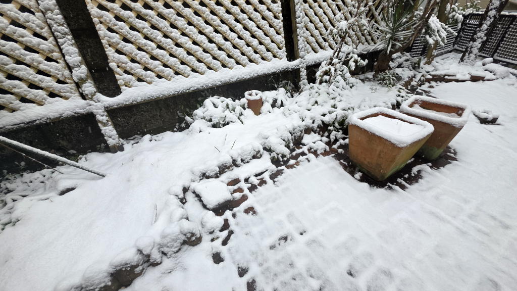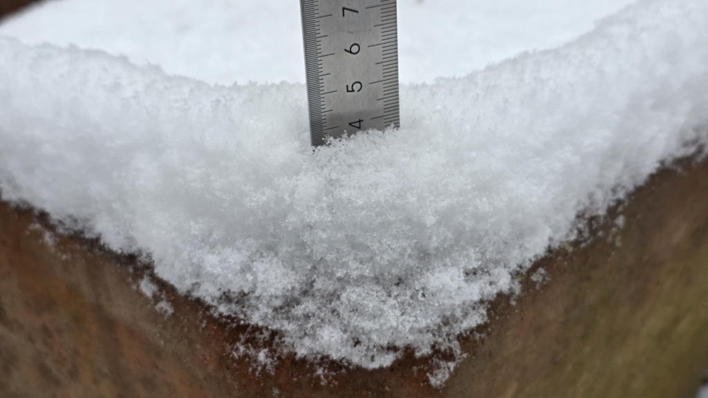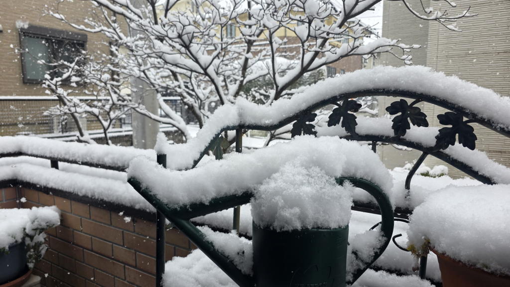 自宅の雪は降り止まず、積雪量は5~6cmになった。