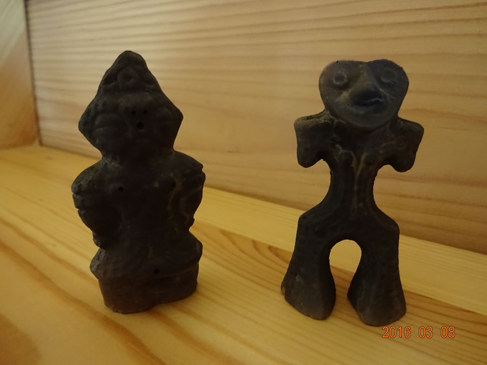 そして、再び1階に戻って、ミュージアムショップに直行した。「埴輪文化圏」の博物館なので、土偶さんのレプリカはないだろうなと諦めていたのだが、なぜか、沢山置いてある埴輪レプリカの中に、今まで見た事もない「遮光器土偶」と「ハート顔土偶」のミニチュアレプリカを発見。1体(個)360円で、2体を購入。これでまた土偶レプリカのコレクションが増えたぞ!