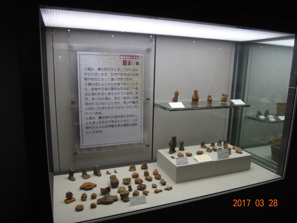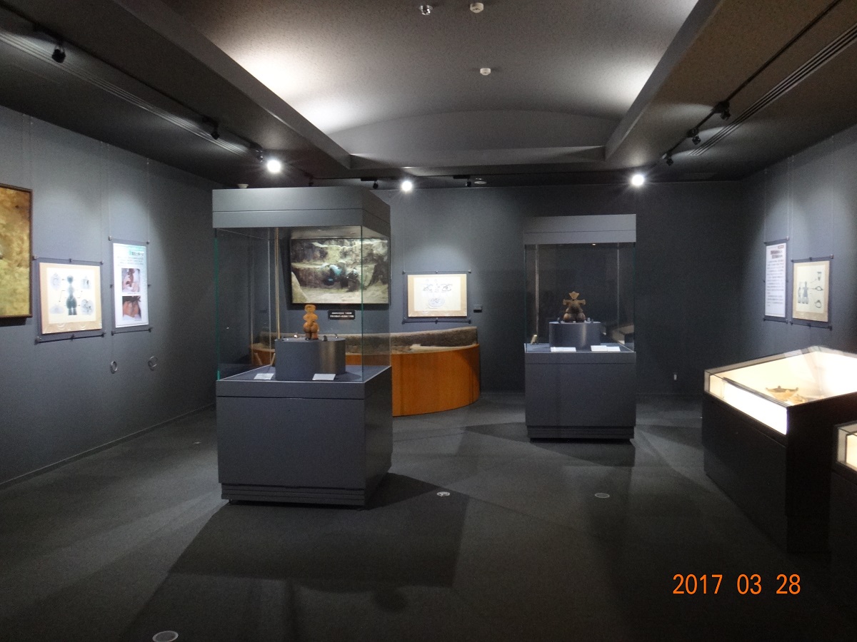 特別展示室を出たり入ったりして約10分。十分に穢れを払い、土偶さんの発する神秘エネルギーを吸収できたと確信し、隣の展示室に移動した。こちらは縄文土器中心の展示だが、奥の方には土偶さんの展示スペースもある。