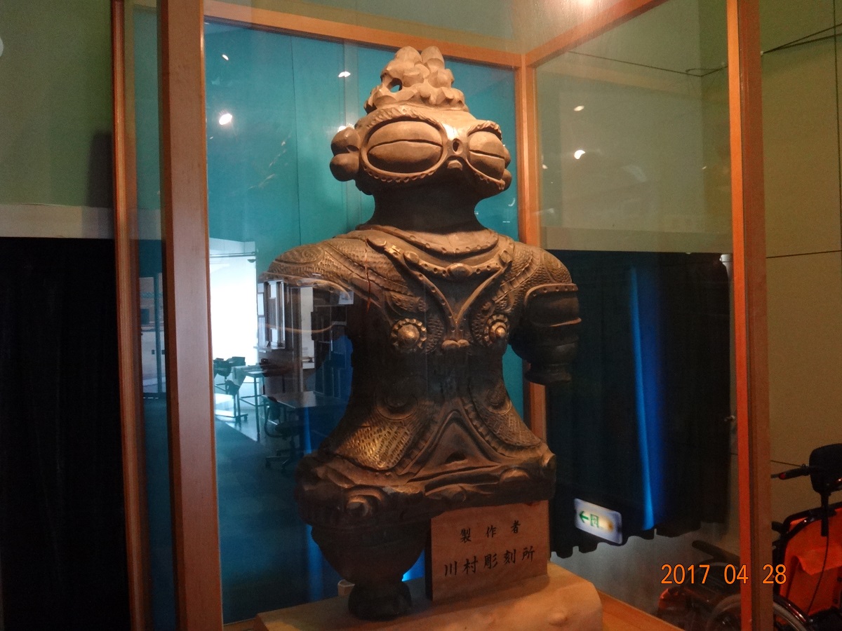 正面から見ると愛らしいが、斜め下から見上げると、ど迫力でちょっと恐い。「やっぱり遮光器土偶のモデルは宇宙服着たエイリアンだろう」なんて呟いてしまった。