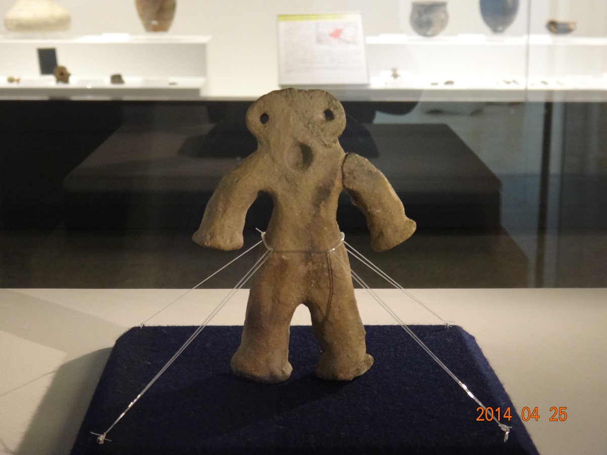 1回目の探訪(2014年4月25日)に撮影した「観音寺本馬遺跡出土土偶さん」の写真。「かほちゃん」と呼ぼうと思う。20数枚写真撮影したのだが、何故か、ピンぼけばかりで、写真の腕前にはちょっと自信のある私には悔しい体験となった。捲土重来を期して3回目の探訪となったのだが…