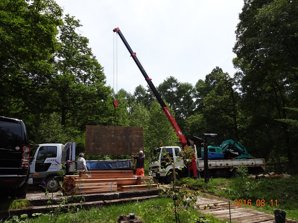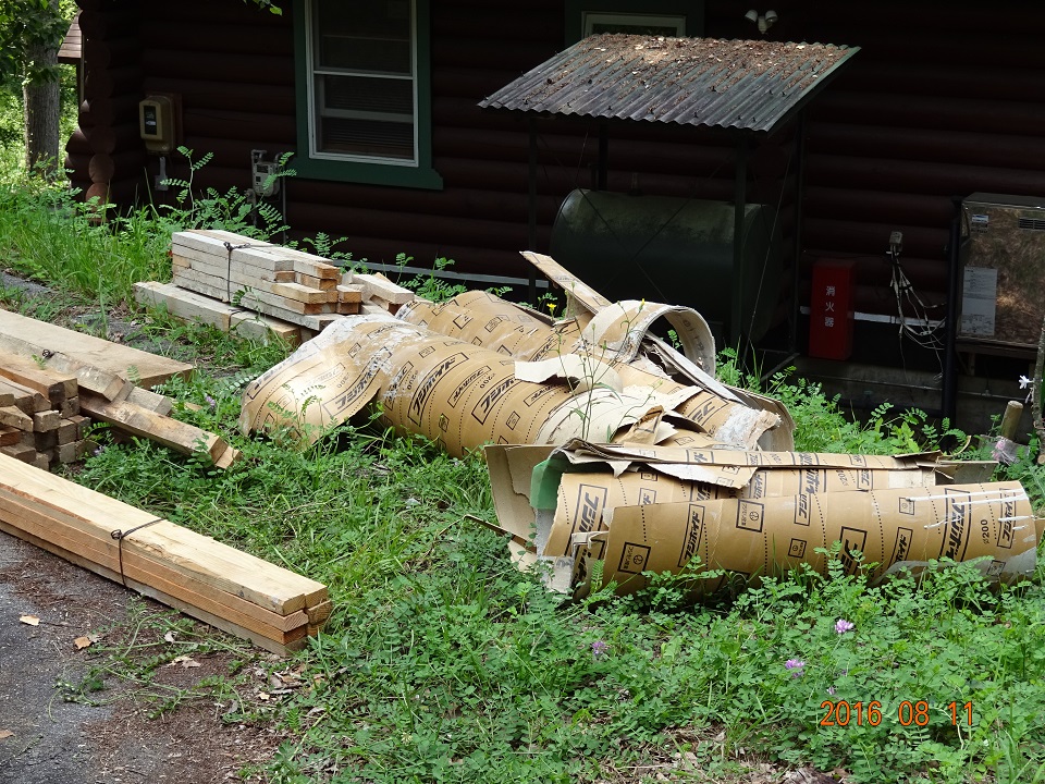 本社が甲府市で、八ヶ岳オフィスから近いのも親近感があり、私「御用達」のひとつである。運送業者さんも手慣れたもので、5分程で枕木駐車場のアプローチ寄りのスペースに、WRC部材の小山が出来上がった。