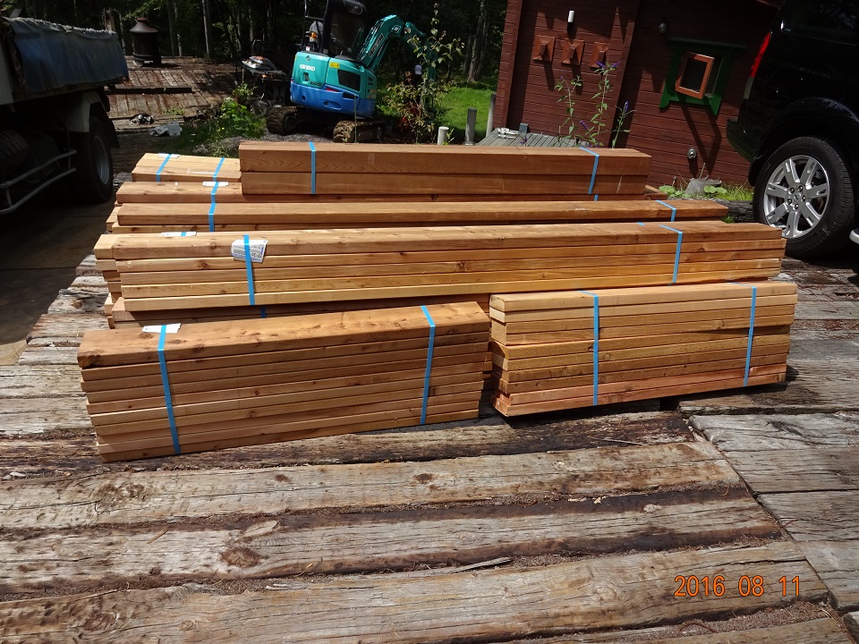 これがウッドデッキ作成のためのWRC材。「最高の部材を最も安い価格で無駄なく使う」というのが私のモットーである。今回も、厳密に計算した上で部材を発注した。