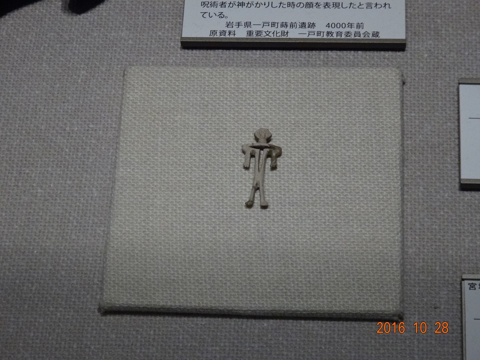 こちらが超レアな「角偶」さん。石巻市沼津貝塚出土(約3,000年前のモノ)。この繊細な作りは正にアートだ。宮城県指定文化財でもある。