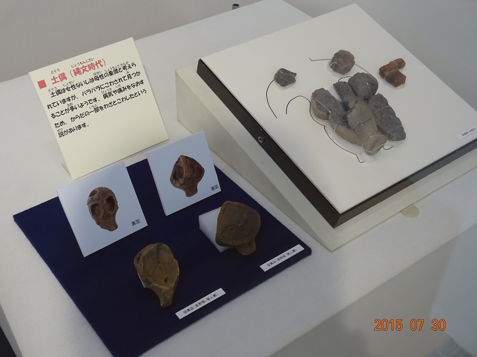この土偶さんの左隣には、何故か「長野県出土」の土偶さんのお顔が2点展示されていた。