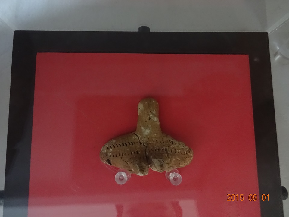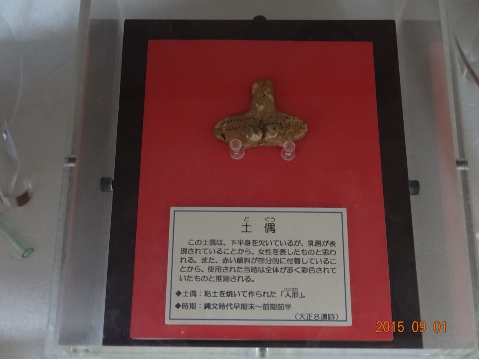 探訪お目当ての逆T字型(凸字形)のシンプルな小型土偶さん。縄文時代も早期や前期の土偶さんになると、このようなシンプルな造形となる。無駄がなく美しい。