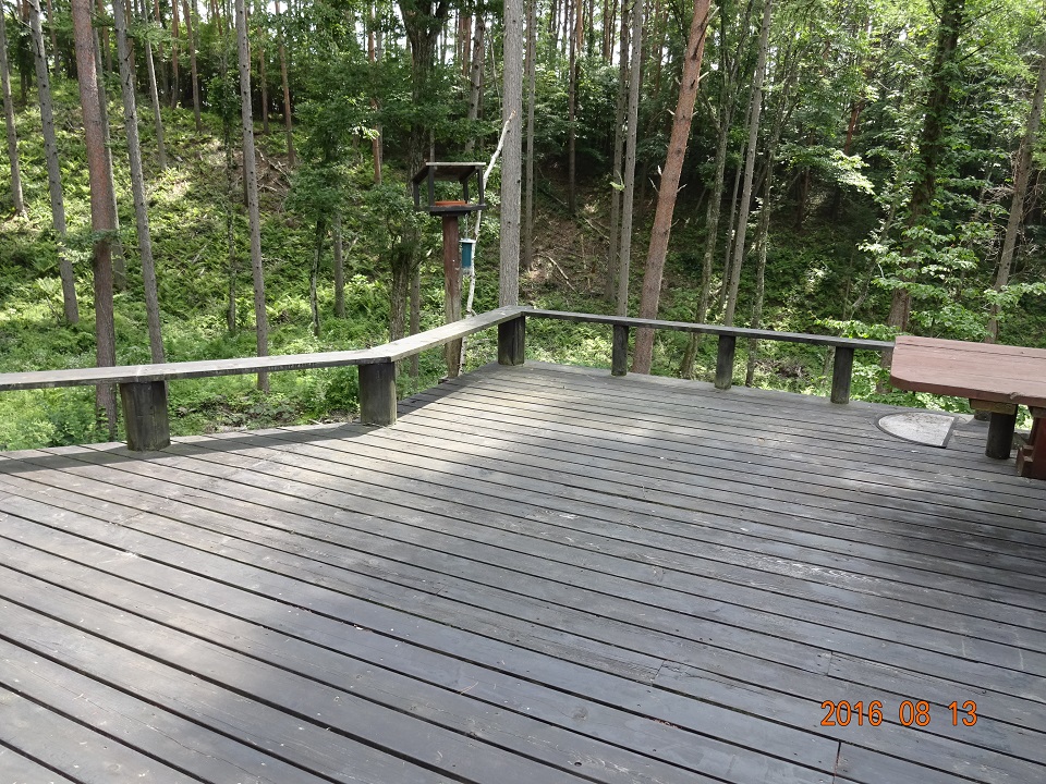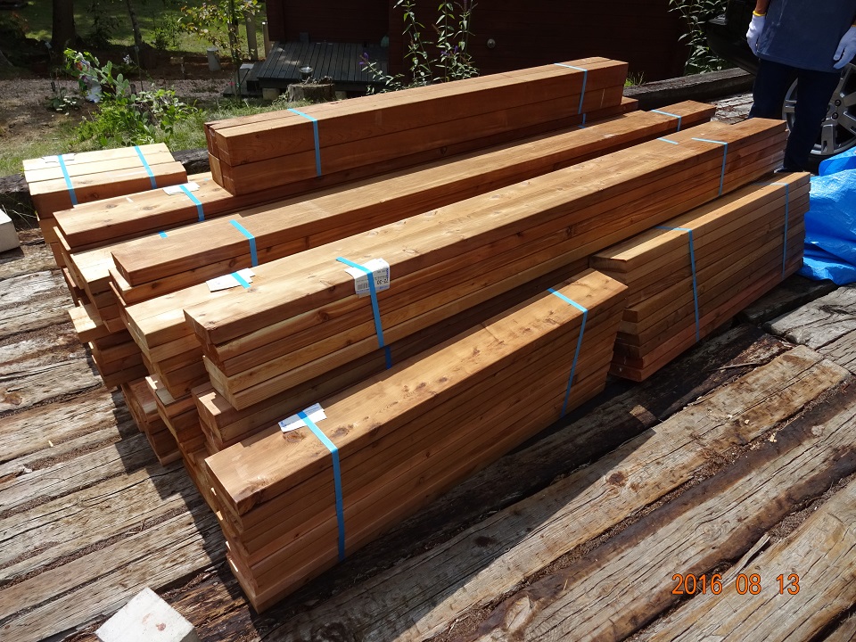 8月13日の昼前には、高速バスで家内と三男が八ヶ岳にやって来た。午後1時半過ぎから三男に手伝ってもらって、WRC材をメインウッドデッキに移動。所要時間は30分弱。