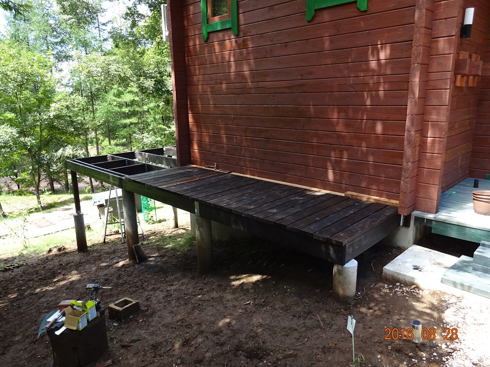 八ヶ岳オフィス ウッドデッキ増設工事 組立本工事《2日目:デッキ床材工事》