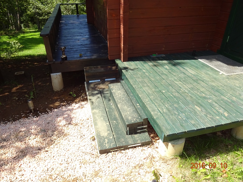 10日の午前10時半過ぎに、注文してあったステップの部材が配送された。注文した業者さんにカットも依頼してあったので、枕木部材をただ積み上げて金具で固定するだけの作業である。