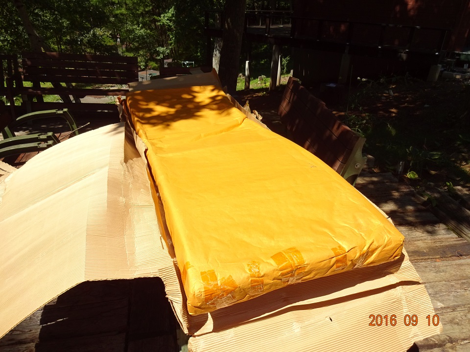 「ガーデンベッドをウッドデッキに置いて完工宣言しよう!」そう決めて、丁寧な梱包を解く。