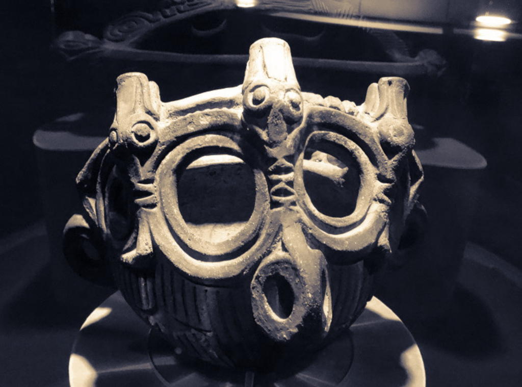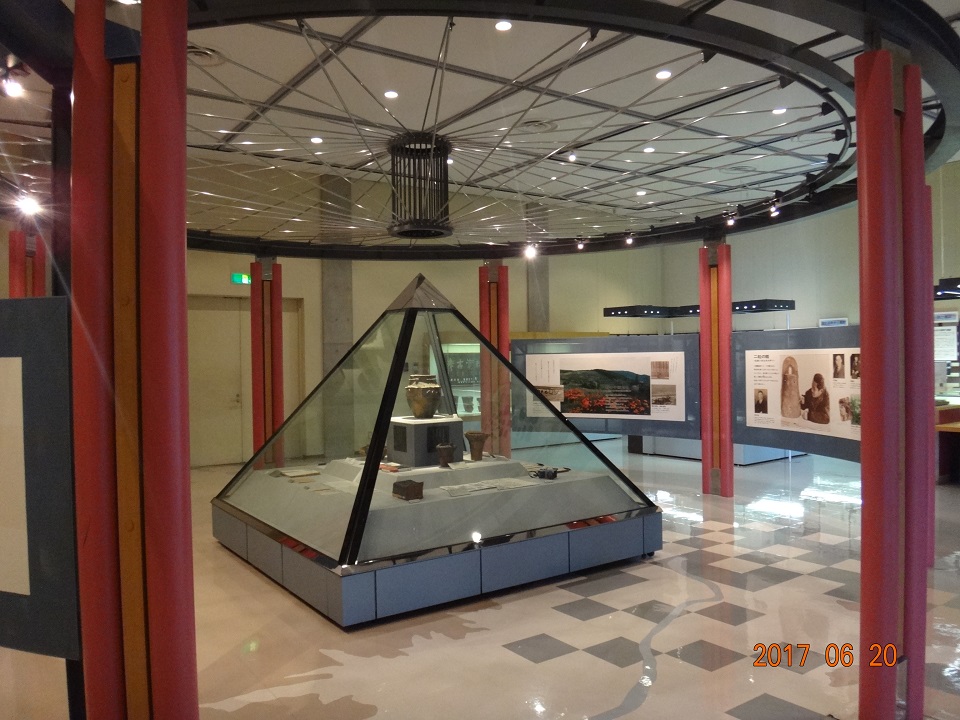 入り口左側に単独展示されている探訪のメインターゲット『蛇体文装飾付釣手土器』にご対面。星野之宣先生の宗像教授伝奇考第7集3話「蛇神融合」に描かれた土器で間違いない。神秘的造形の美しさに思わず見とれてしまう。