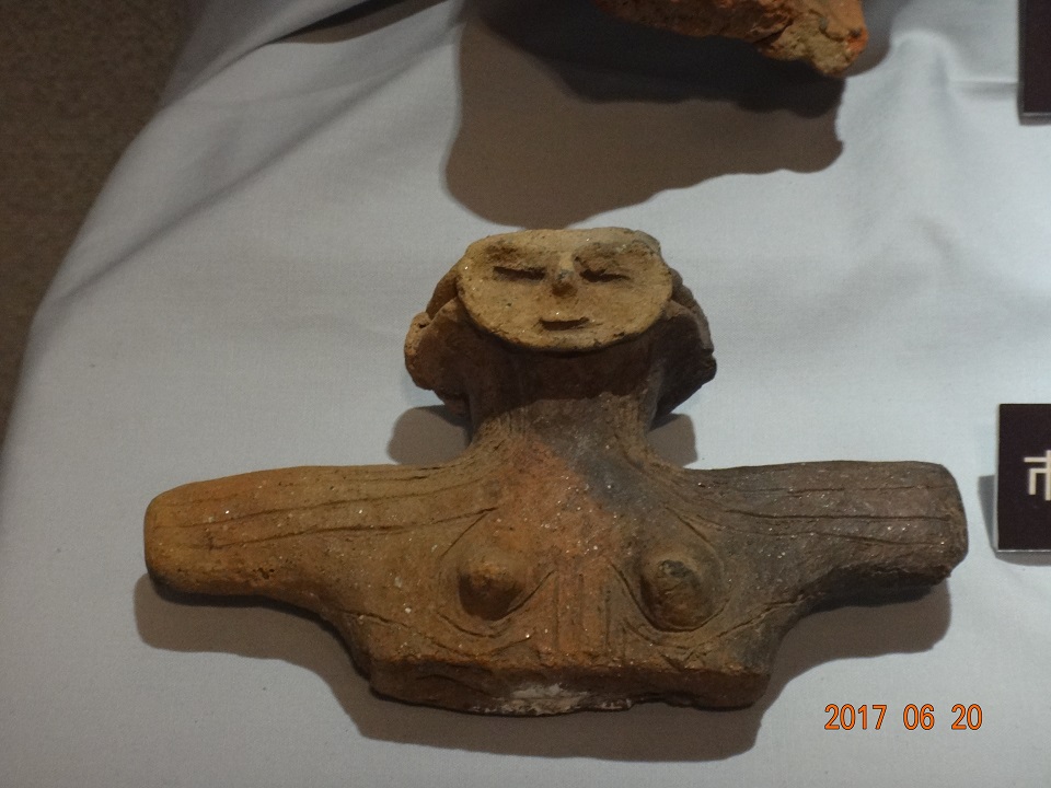 中央の土偶さんは、逆にあまり目にしないタイプである。「板状土偶」の一種であろうか?
