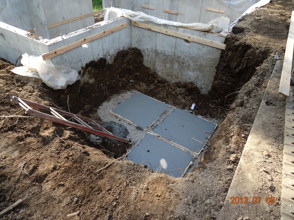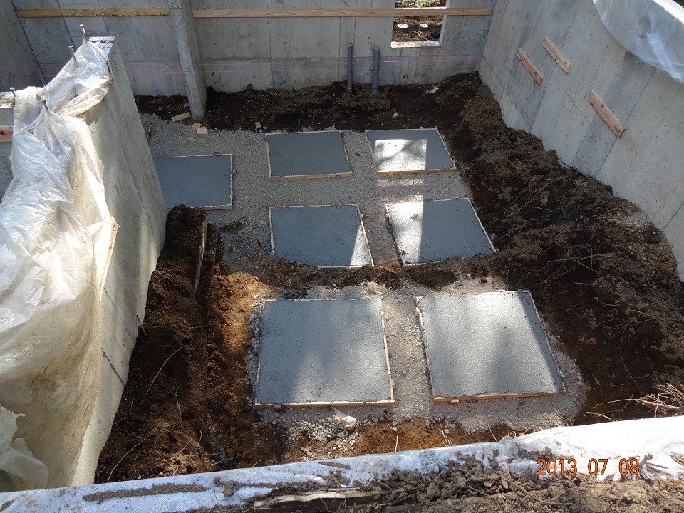 この日は土台となる四角のベースに生コンを流し込む作業まで進む。丸1日養生してから、ボイド管で柱を立ち上げる事になる。