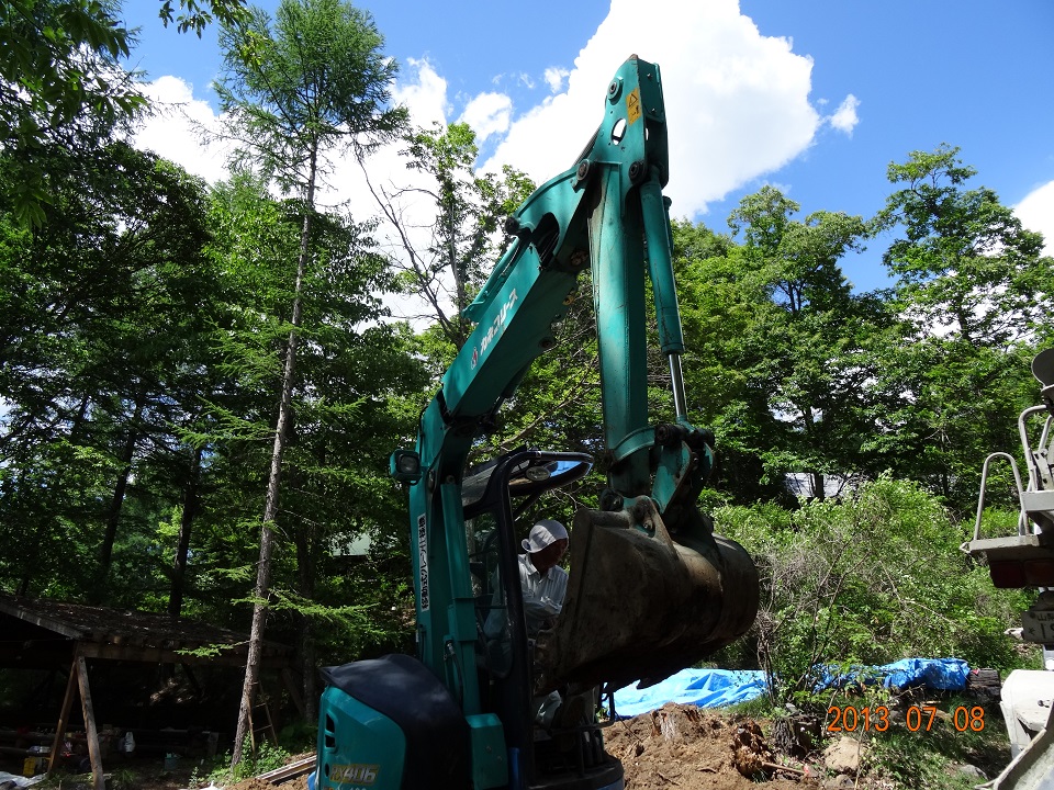 布基礎内部の部分とエントランスデッキ部分の計11本だが、布基礎に比べると驚くほど早く作業が進んだ。メインウッドデッキの時もそうだった事を思い出した。