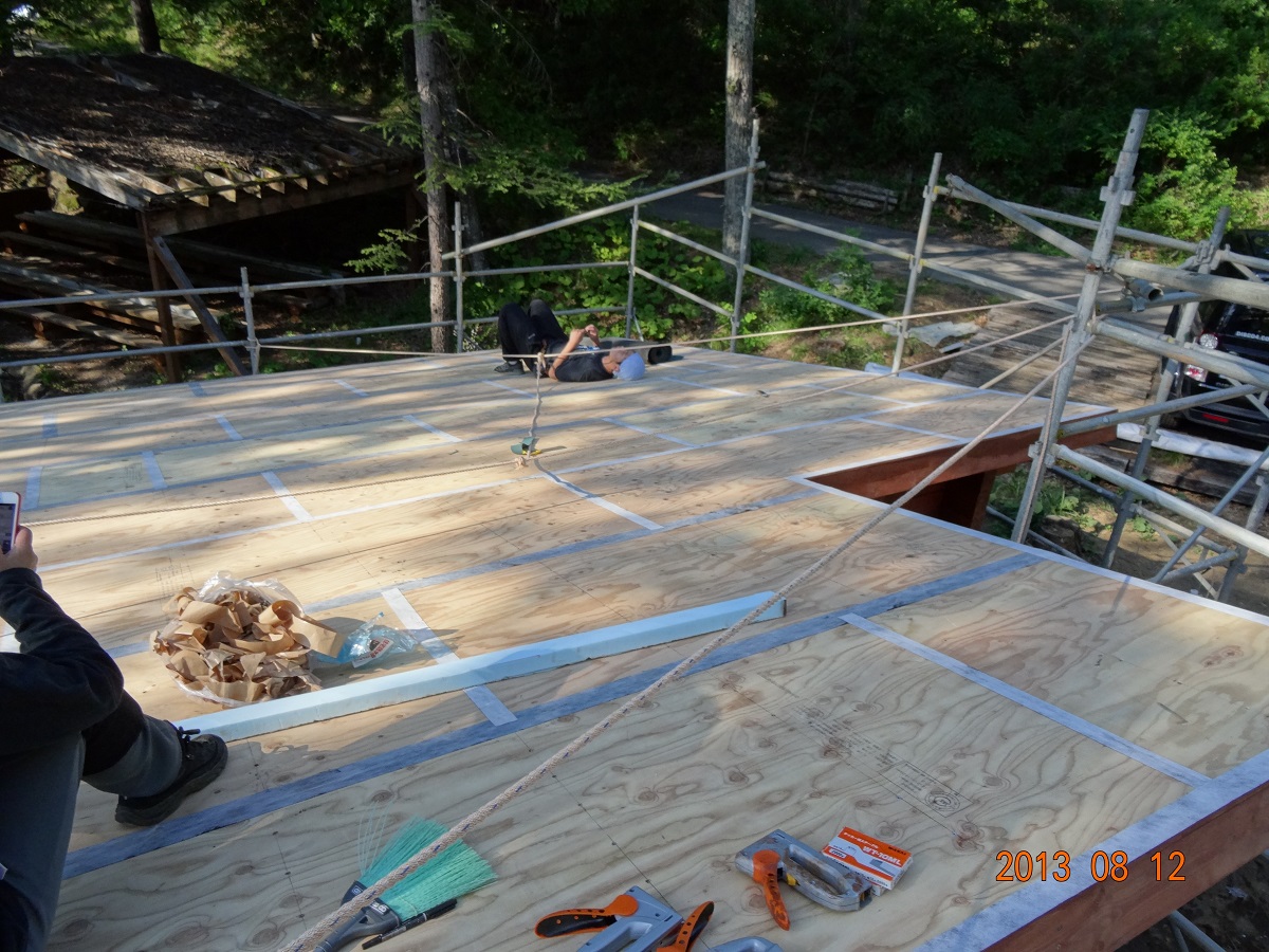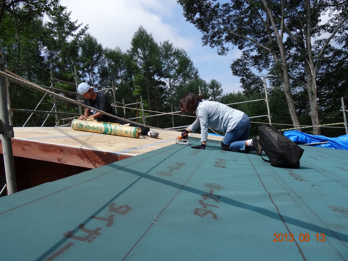 2013年8月12日~13日の2日間は、ルーフィング貼り(防水シート)の作業を計画。