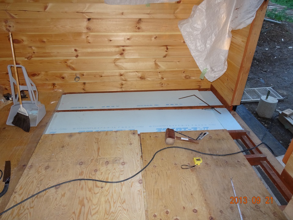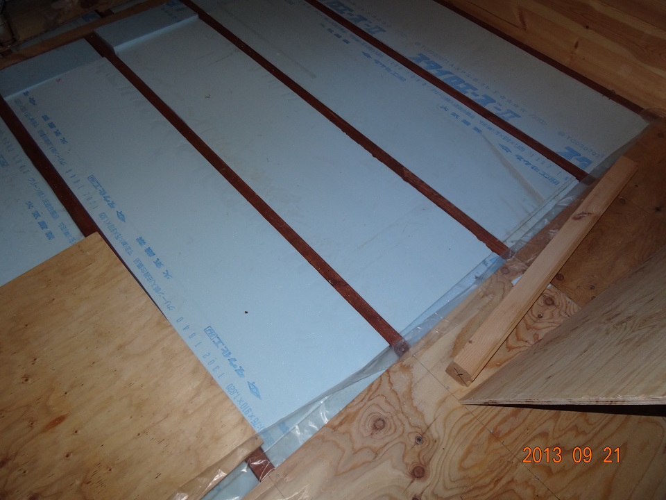 この頃になるとスタイロエースのカットも要領が掴めてきて、カットのやり直しのような事はほとんどなくなってきた。それに、上を向いて姿勢でスタイロエースを押し込むのと比較すると、下を向いて叩き込む床の作業は随分と楽だった。