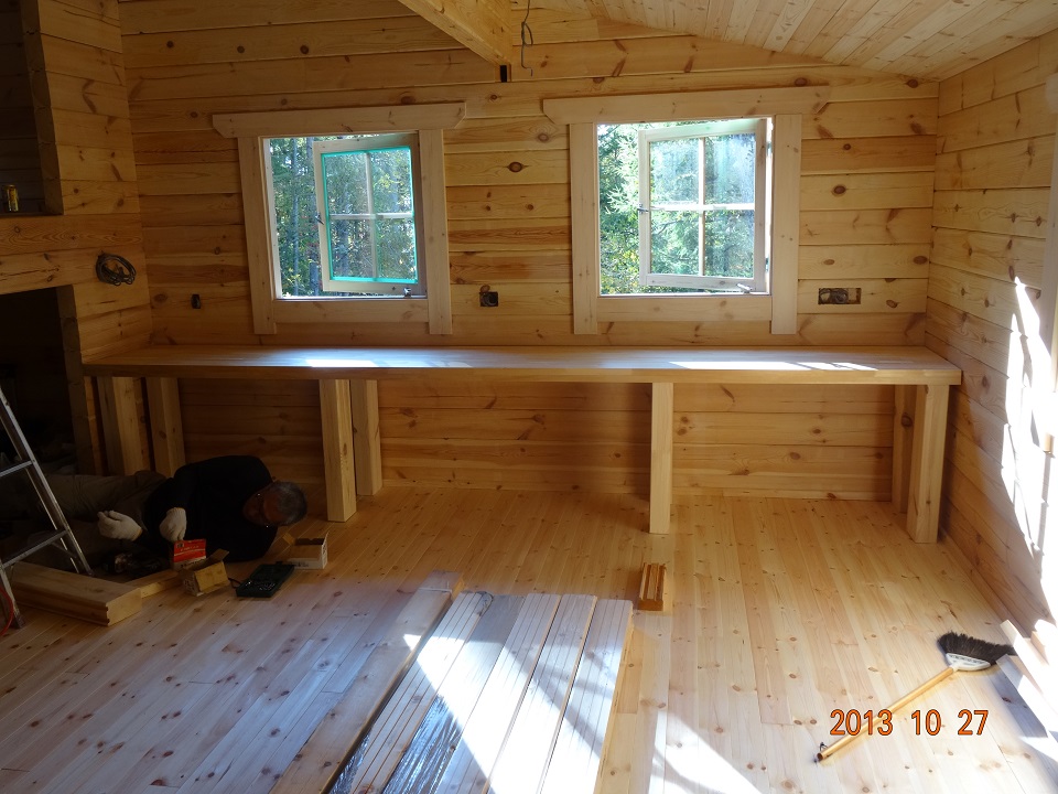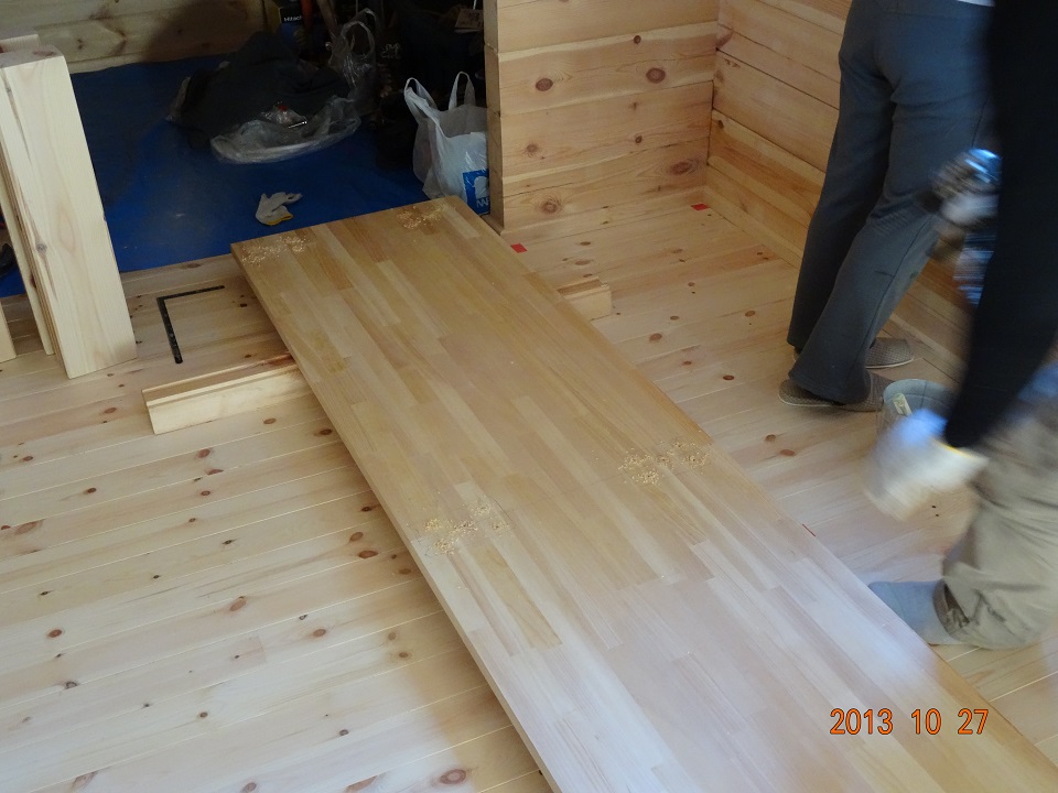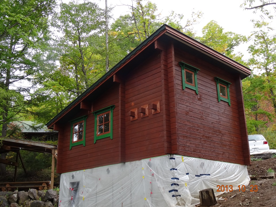 10月18日までに月内の講演をすべて終えた私は、10月23日から八ヶ岳に長期滞在し、オフィスセルフビルド作業に没頭する事とした。作業としては、内壁の2度目の塗装や内側窓飾りの取付、オフィスデスクの作成・設置、書棚やトイレ工事のための事前準備等々、比較的細々とした作業である。
