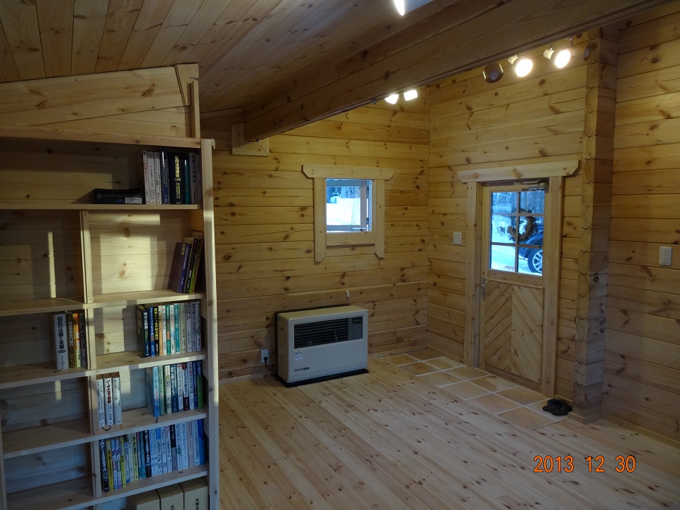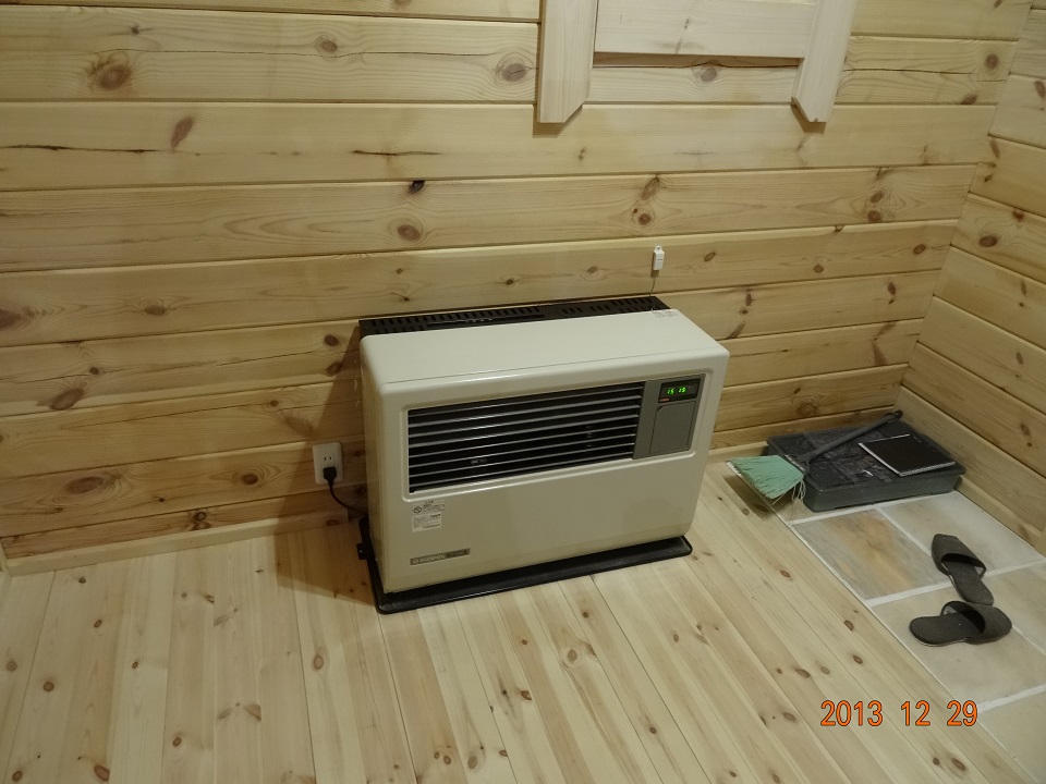 大型の石油ファンヒーターを設置。断熱処理を十分に施したログハウスなので、どんなに寒い冬もこれでバッチリ!