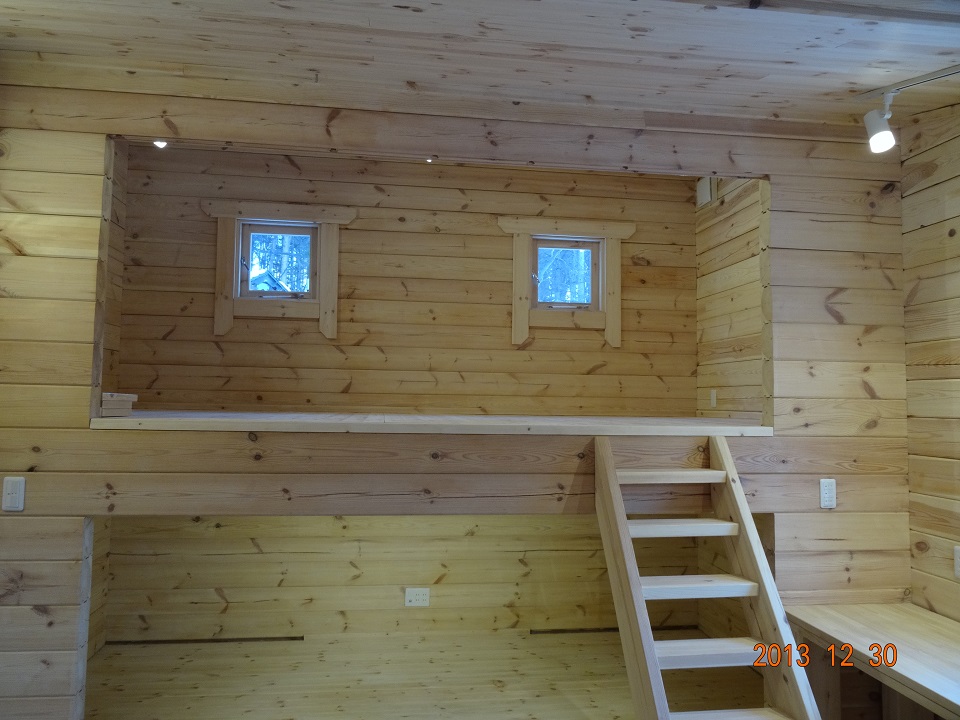 ロフトも美しく仕上がった!ロフトに上る階段は仮置き状態。最後の最後に(真の完工時)固定しようと決めた。