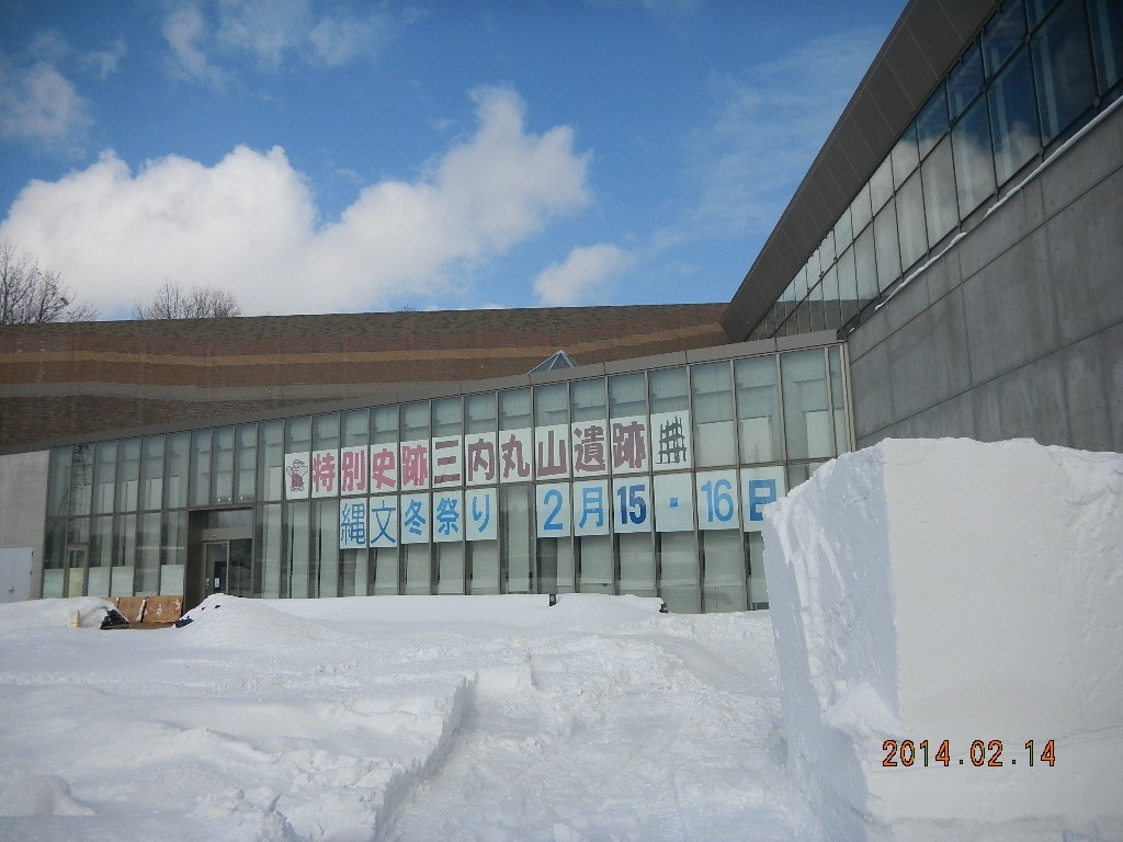 あぁっ、雪のことまったく忘れてた...(>_<) 「外にある遺跡の見学が目的ではない。ターゲットは、博物館に飾られている土偶だ!」強がりを言ってみたが、不安が一気に高まった。青森の雪は凄いんだろ うな~。不安が募る中、新青森駅に新幹線は定刻通りに到着。早速、観光案内所で三内丸山遺跡が見学可能かを確認した。結論は「可能」、見学時間は様々な コースがあるが1時間もあれば、一通りは見て回れるとの事。宿泊予定のホテルからはタクシーで15分程度の場所なので、時間的にも問題はない。市内のホテ ルでチェックインを済ませると、そのまま三内丸山遺跡へと向かった。市内の雪は、昨年の訪問時に比べると驚く程少ない。長野オフィスの雪の方がはるかに深 い感じだ。問題は寒さである。遺跡には15分ちょっとで到着。タクシーをおりてみたが「寒くない」。朝は、毎日のように零下10度を下回る長野オフィスに 比べるとむしろ「暖かい」のだ。オフィスの過酷な自然環境に鍛えられ、私はすっかりワイルドになったようだ。