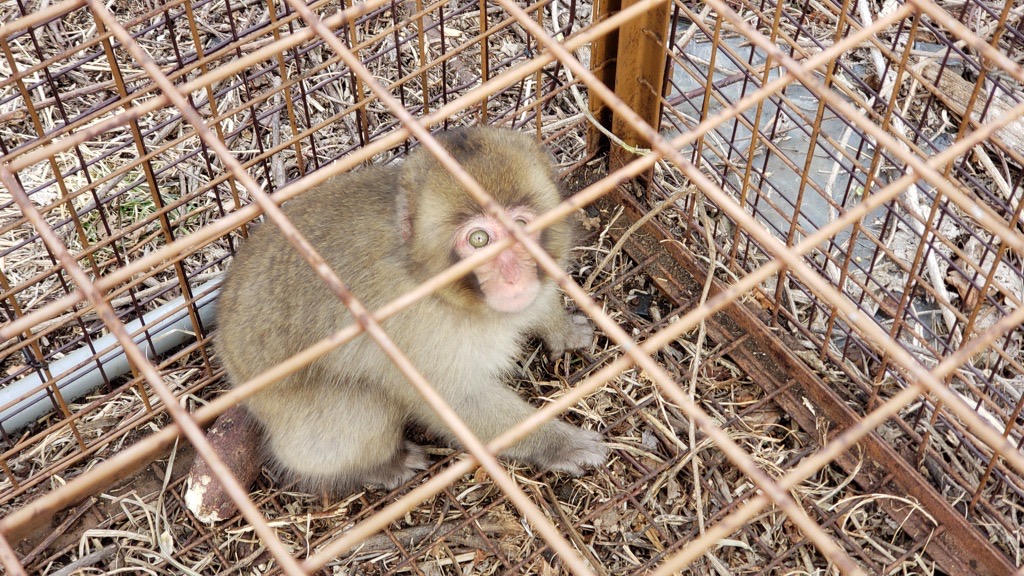 「旧立場川橋梁 」苦手なニホンザルとの檻越しの初遭遇